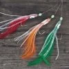 Dieses Vorfach ist 170cm lang und besteht aus 2 roten Gummi-Makks in der der Größe 4/0 und 2 Makrelenblinker ebenfalls in der Größe 4/0.