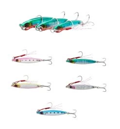 Dieser bleifreie Pilker mit seiner POWER-GLO (selbstleuchtend) Lackierung und den Silberfolienstreifen hat eine Bananenform. Er reizt mit seiner Taumelbewegung beim Ablassen die Fische zum Anbeißen. Am Kopf ist eine roter Gummimakk mit Fluo-Schwanz als Beihänger angebracht, sodass eine höhere Fangsicherheit gegeben ist. Diesen Taumel-Pilker gibt es in fünf verschiedenen Gewichten von 100g bis 500g.