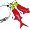 Dieses Dorschfliegen-Vorfach besitzt 2 Haken der Größe 8/0, welche an einer 0,90mm starken monofilen Schnur befestigt sind. Die Vorfachlänge beträgt 1,10m.