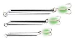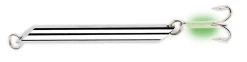 Dieser Pilker hat ein traditionelles Stiftdesign. Er ist ausgestattet mit starkem Sprengring und einem starken Drilling, der mit einem Leuchtschlauch ummandelt ist. Der Pilker ist bleifrei und in Gewcihten von 20g bis 500g verfĂĽgbar.