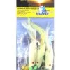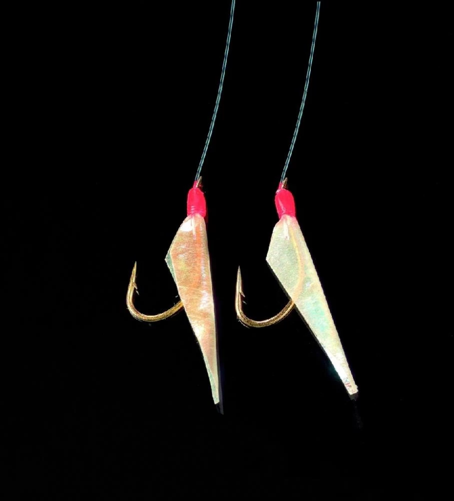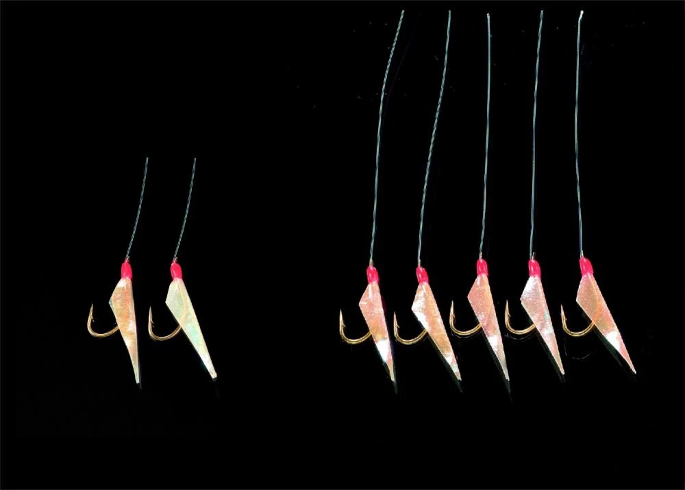 Dieses Vorfach für den Fang von Heringen ist mit echter Fischhaut ausgestattet. Es stehen zwei Varianten mit 2 oder 5 Haken zur Verfügung. Die Haken sind an einer 0,30mm starken Mundschnur und diese an einer 0,35mm starken Hauptschnur befestigt.