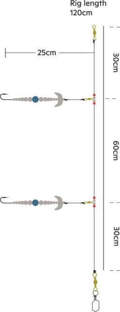 Dieses kurze Zwei-Haken-Vorfach kann sowohl zum Werfen als auch zum Bootsangeln verwendet werden. Mit dieser klassischen Doppelhaken-Spinner-Montage sind Sie fĂŒr eine breite Palette von Angelmethoden und Fischarten gerĂŒstet.