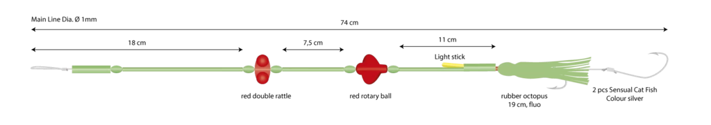 Das Single Octopus Doppelhaken-System ist ein perfektes Set zum Angeln mit großen Filets oder ganzen Fischen, das in tiefen Gewässern hervorragend funktioniert. Das Vorfach ist für tiefes Wasser, große Köder und natürlich große Fische geeignet und ideal für das Angeln auf Heilbutt, Dorsch, Seelachs und Leng. Das System ist 74cm lang, verfügt über eine Turbine und Rasse,, 2 Hakenl und einen 19cm langen Oktopus.
