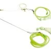 Das Naturköder-Rig wird mit Fischfetzen bestückt. Zusätzlich Reize werden durch den Fluoschlauch und den Locklöffel erzeugt. Den Fetzenköder am Besten mit einem Stück Draht sichern.