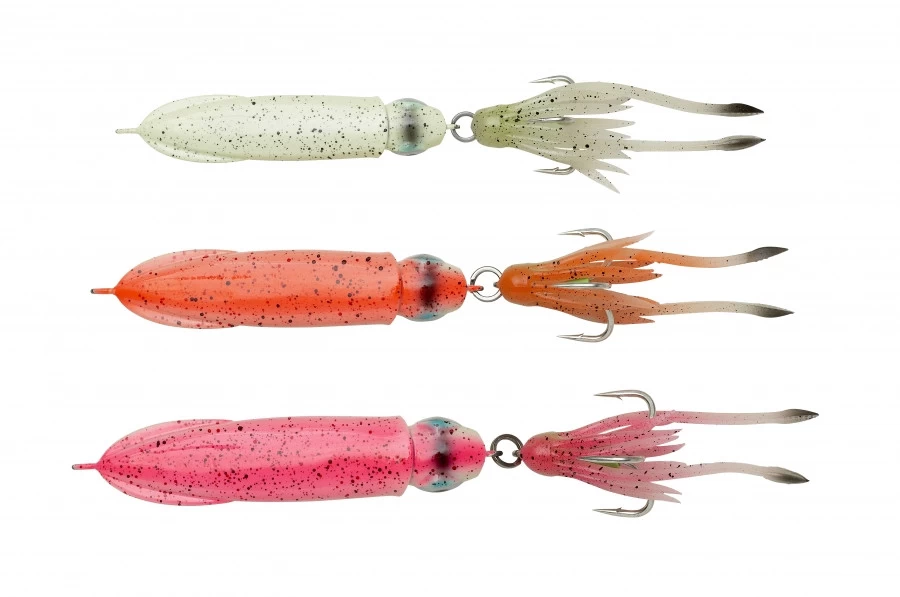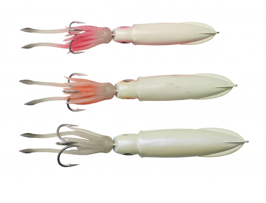 Basierend auf einem 3D-Scan eines echten Tintenfisches. Perfektioniert fĂĽr tiefes und langsames Jiggen auf groĂźe Raubfische. Extrem verlockende Aktion und ausgestattet mit einer eingebauten, klickenden Rasselkammer und Super-Glow und UV-Effekten.